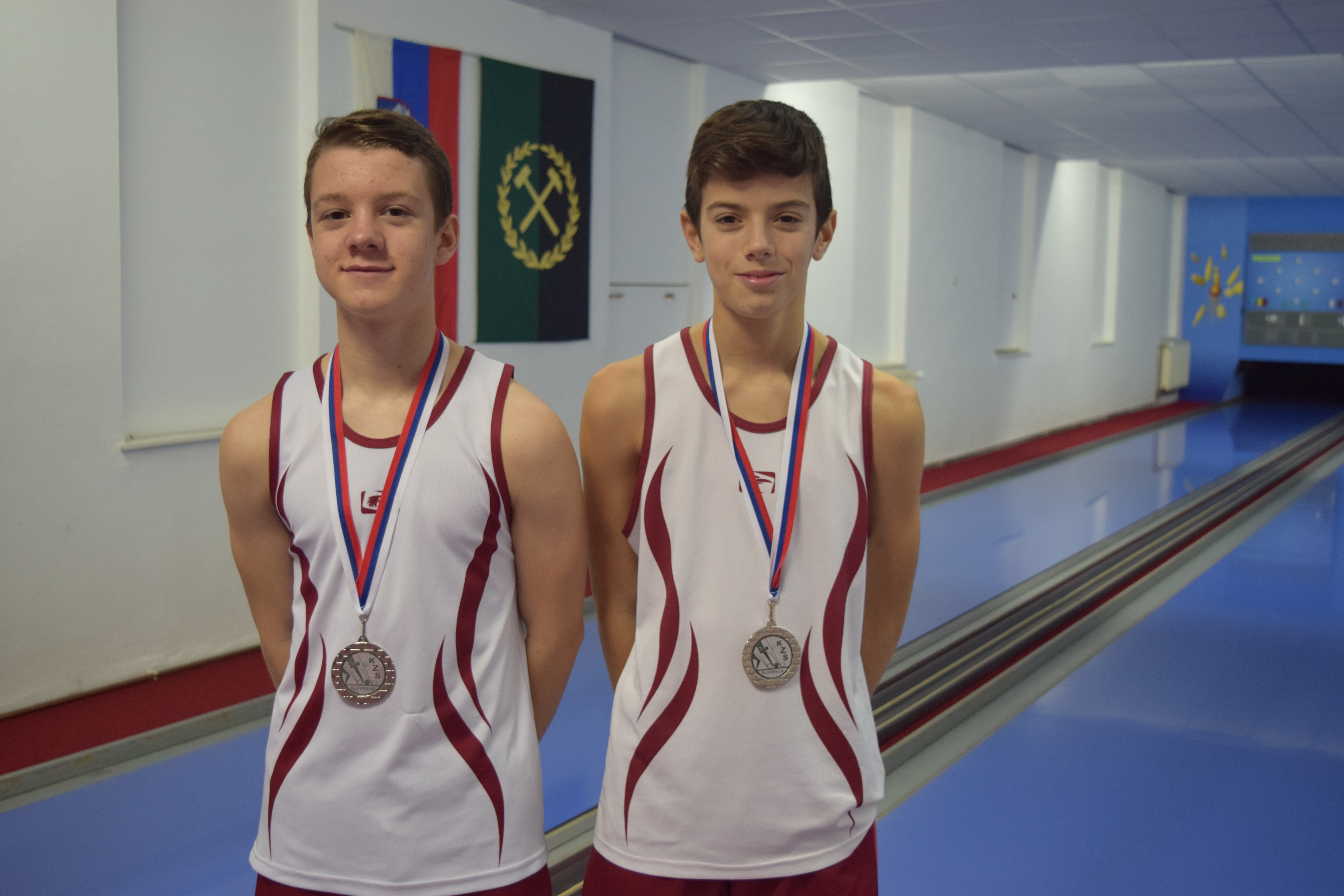 Fantje so bili v Hrastniku z dvema dvojicama: Nejc Miklavec – Žiga Požar ter Enej Požar – Tine Vidmar. Na prvenstvu je bilo dvanajst dvojic. Žal sta se v polfinalu srečali naši dvojici med seboj in mlajša fanta  sta poskrbela za presenečenje ter premagala svoja starejša kolega – lanska zmagovalca. Kljub temu sta Nejc in Žiga osvojila bron. V finalu pa sta Enej in Tine imela za nasprotnika dvojico Kegelbara iz Radelj. Postojnčana sta prvi set dobila, drugega nesrečno izgubila za vsega en kegelj in nato v dveh dodatnih lučajih zlato medaljo prepustila tekmovalcema iz Radelj.
